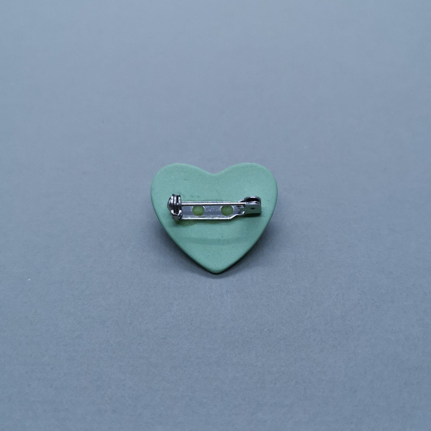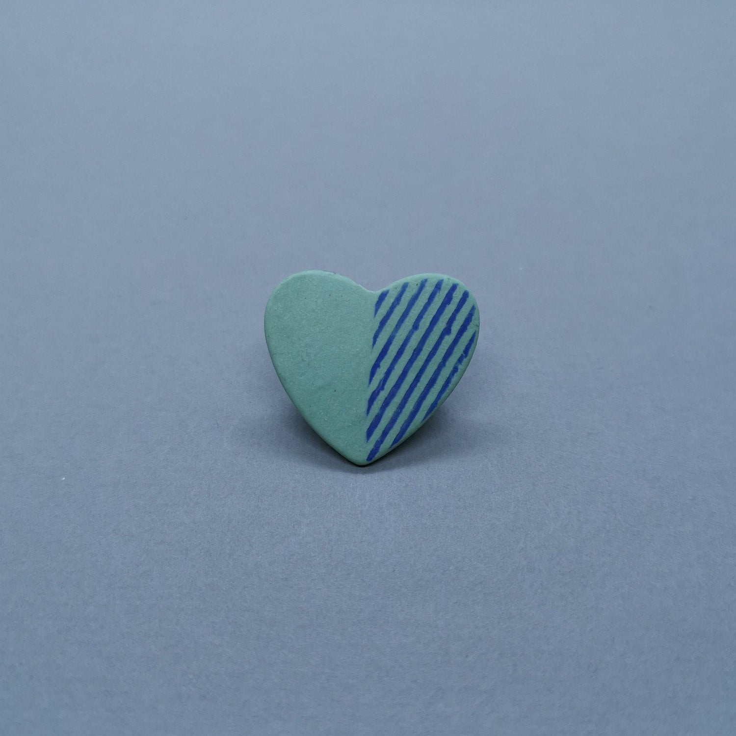 Handmade green porcelain heart shaped brooch with blue slip inlay.